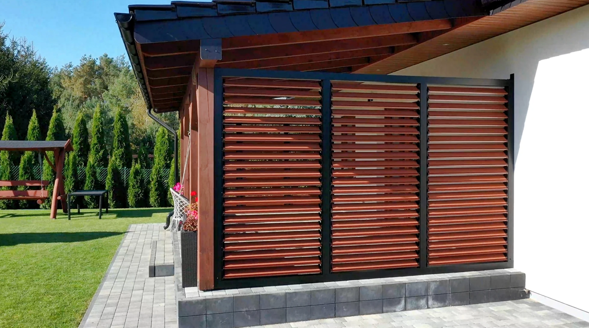 REALIZACJA: Przeciwsłoneczna zabudowa ścianek pergoli drewnianej.